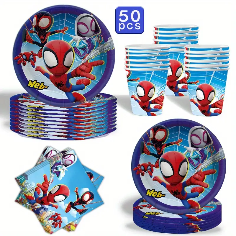 Meie 50-osaline Spidermani peokomplekt sisaldab kõike, mida vajad, et katta lauad vingelt ja värvikalt!