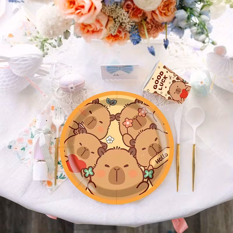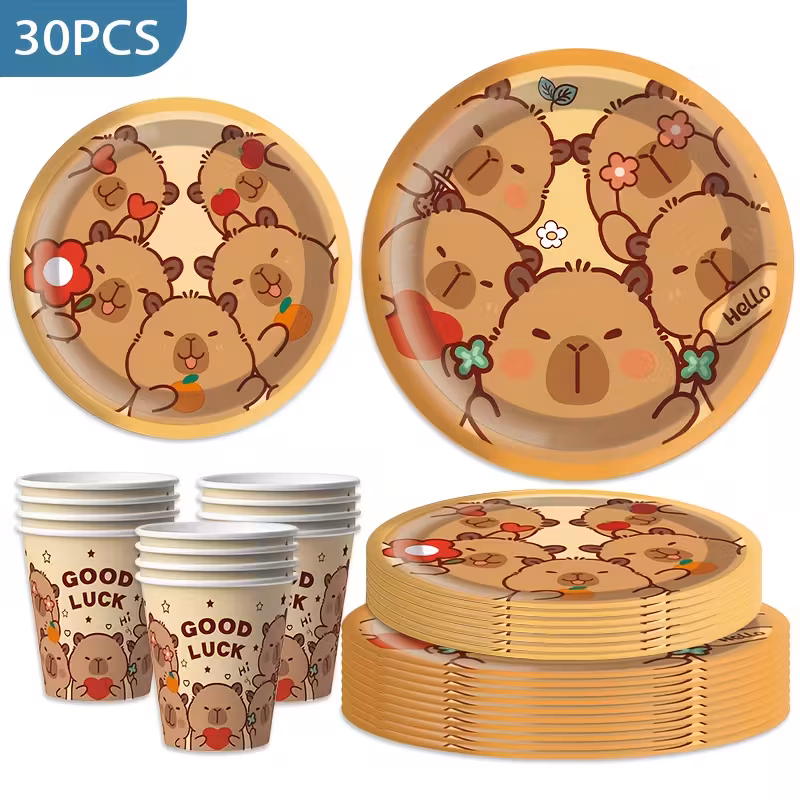 30 tk Kapibara teemaline ühekordne peokomplekt