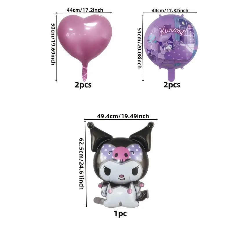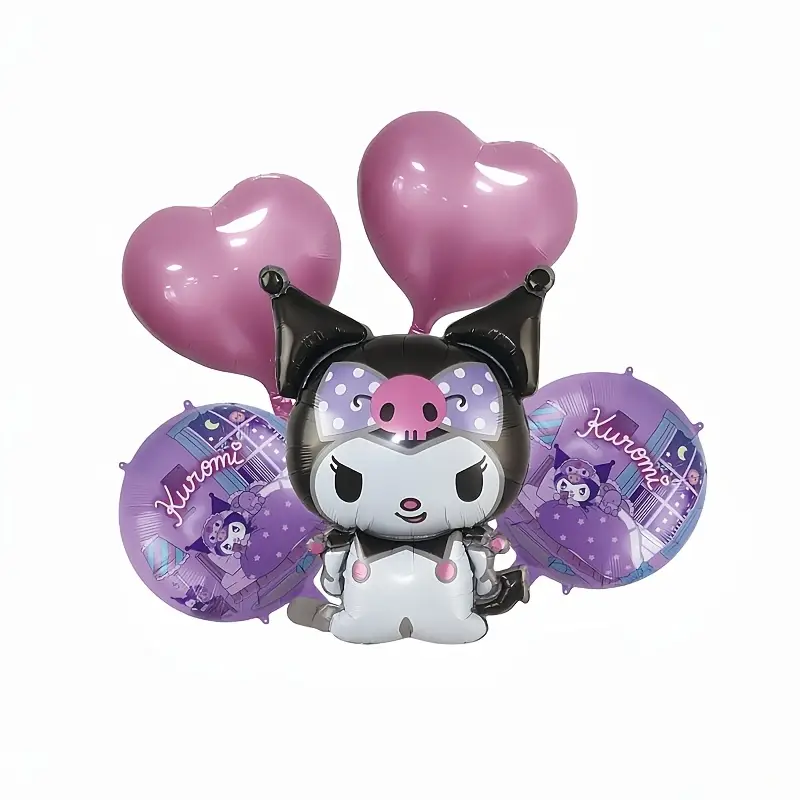 See 5-osaline Kuromi teemaline fooliumõhupallide komplekt toob su peole armsa mässumeelsuse ja pastel-goth’i stiili.