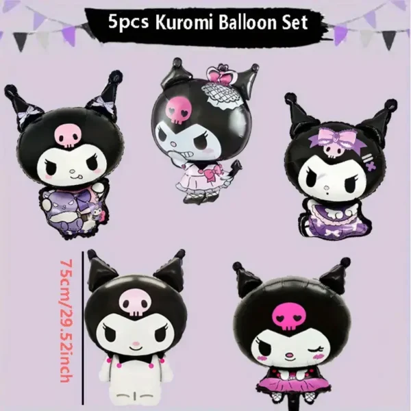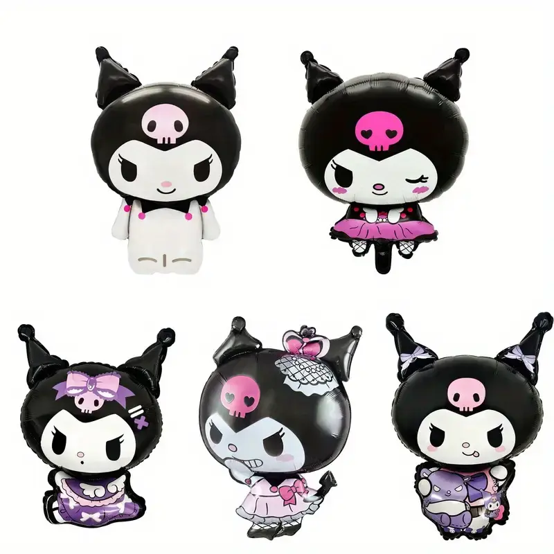 5 erineva kujuga Kuromi-teemalist fooliumõhupalli (kõrgus ca 75 cm)
