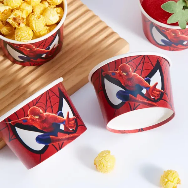 Need Spider-Mani teemalised popcorn topsid toovad peole tõelise kinoõhtu tunde! Laste sünnipäevad, superkangelaste peod või filmiõhtud muutuvad veelgi ägedamaks, kui käes on tops värske popcorni või muude snäkkidega.